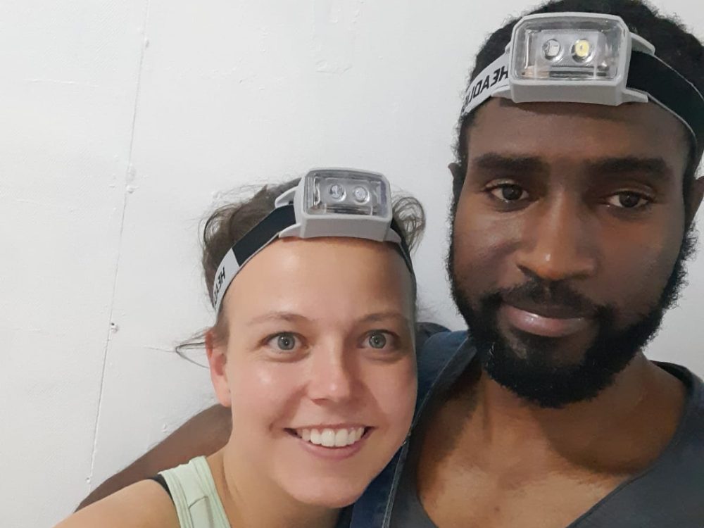 Dus de eerste dagen zullen nu in het teken staan van afwachten tot het stopt met regenen en hopen dat het niet veel erger wordt dan dat het nu is. We balen vooral dat de container er nu nog niet is, want dan hadden we meteen al die tonnen kunnen vullen met regenwater. Aan de andere kant: we zijn er en kunnen nu acclimatiseren en eerlijk gezegd genieten Mike en ik al volop van ons avontuur.