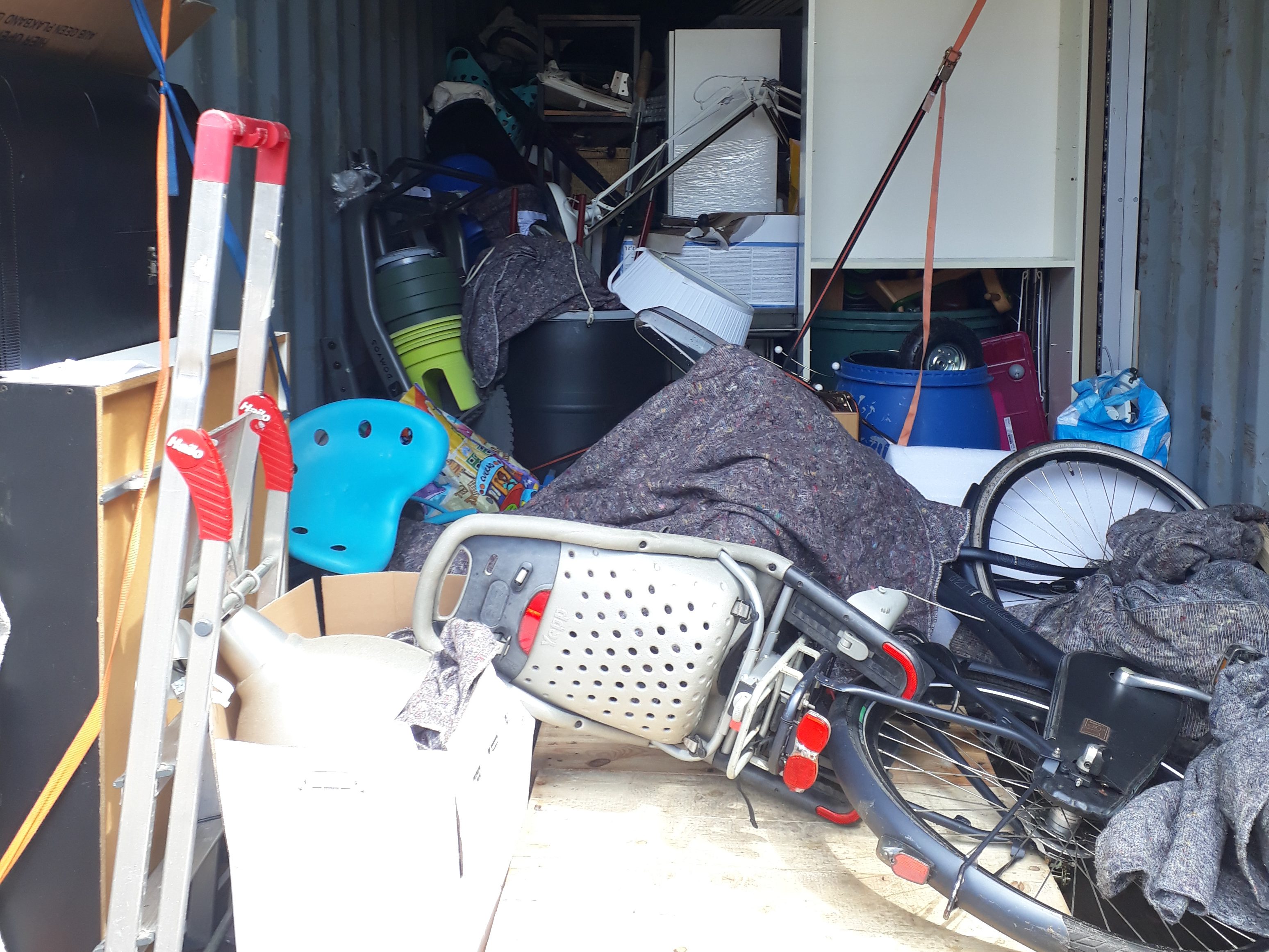 De auto ging eerst, met daaromheen een heleboel matrassen en daarna alle tonnen. Het was niet alleen veel sjouwen (vanuit ons appartement zonder lift), maar ook veel administratie, omdat alles moest worden genummerd, met paklijst waarop alle inhoud van de container staat genoteerd.