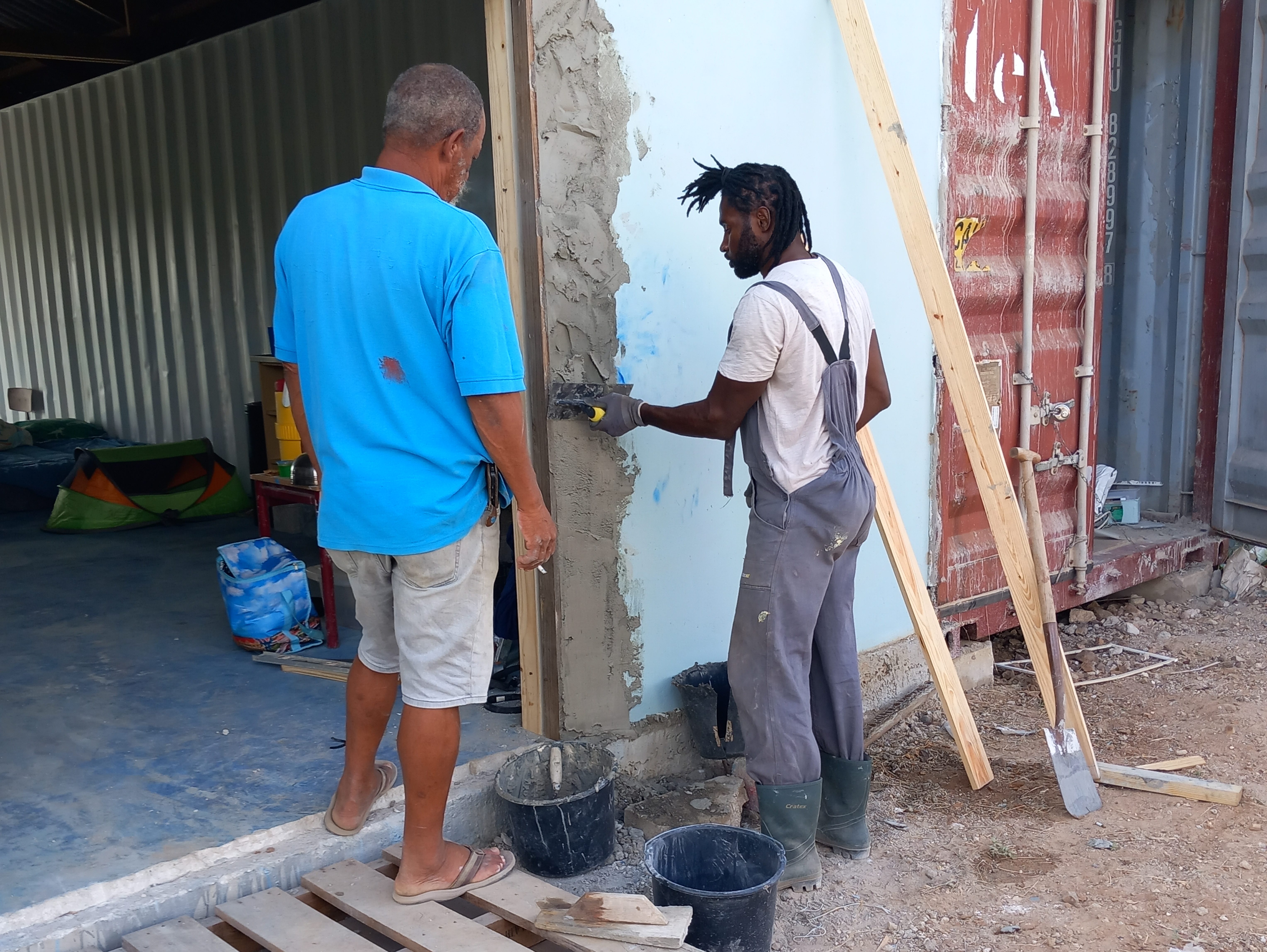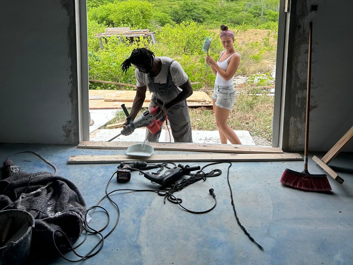 Maar, wat moest er nog gebeuren voordat het huis enigszins bewoonbaar was? Voor ons was dat vooral de ramen en deuren in het huis plaatsen, zodat alles op slot en dicht kan. Elektriciteit, stromend water en onze spullen komen later wel was ons idee. Dan is het de eerste periode vooral kamperen, maar dat heeft ook z’n charme. Bovendien kunnen we altijd naar Mahuma rijden om te douchen, te koken en kleren te wassen.