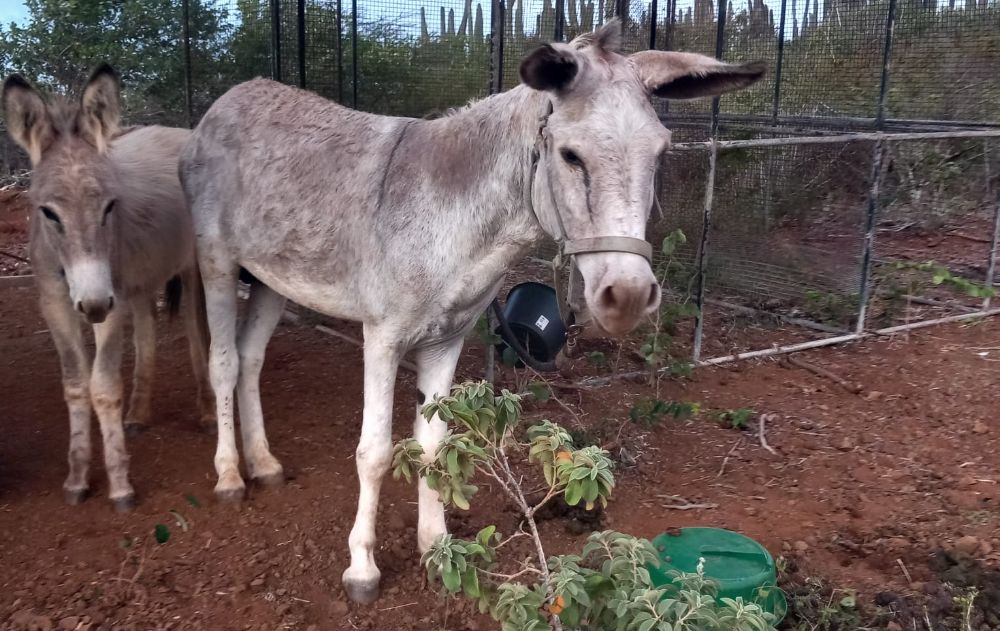 Een paar weken later kregen we er nóg een ezel bij. Een ouder mannetje dat een aantal jaar in de dierentuin woonde, maar omdat de dierentuin van Curaçao is gesloten, zijn de dieren verdeeld bij boeren op het eiland. De kleine ezel is een vrouwtje en heet Coco (bedacht door oma Karin) en het mannetje heet Vriend, omdat Mike hem de hele tijd zo noemde als hij stout deed en Fairo daarom denkt dat het de naam van de ezel is.
